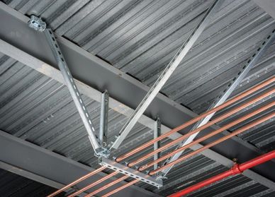Our deliverables include determination of seismic design forces, brace layout/spacing concepts, and load transfer to the structure through a diverse set of connection types such as cast-in-place anchors, post-installed anchors, clamp connections, rod/strut hardware, and proprietary modular support systems. We evaluate connection demands (tension, shear, combined interaction) at slab/beam/joist attachments, verify allowable capacities per manufacturer data when proprietary systems are used (e.g., modular support systems for multi-trade MEP installations), and provide clear reaction loads for coordination with the primary structural system. Final packages typically include engineer-sealed calculations and construction-ready drawings/details showing trapeze framing, bracing configuration, attachment requirements, and installation notes for field execution and permitting